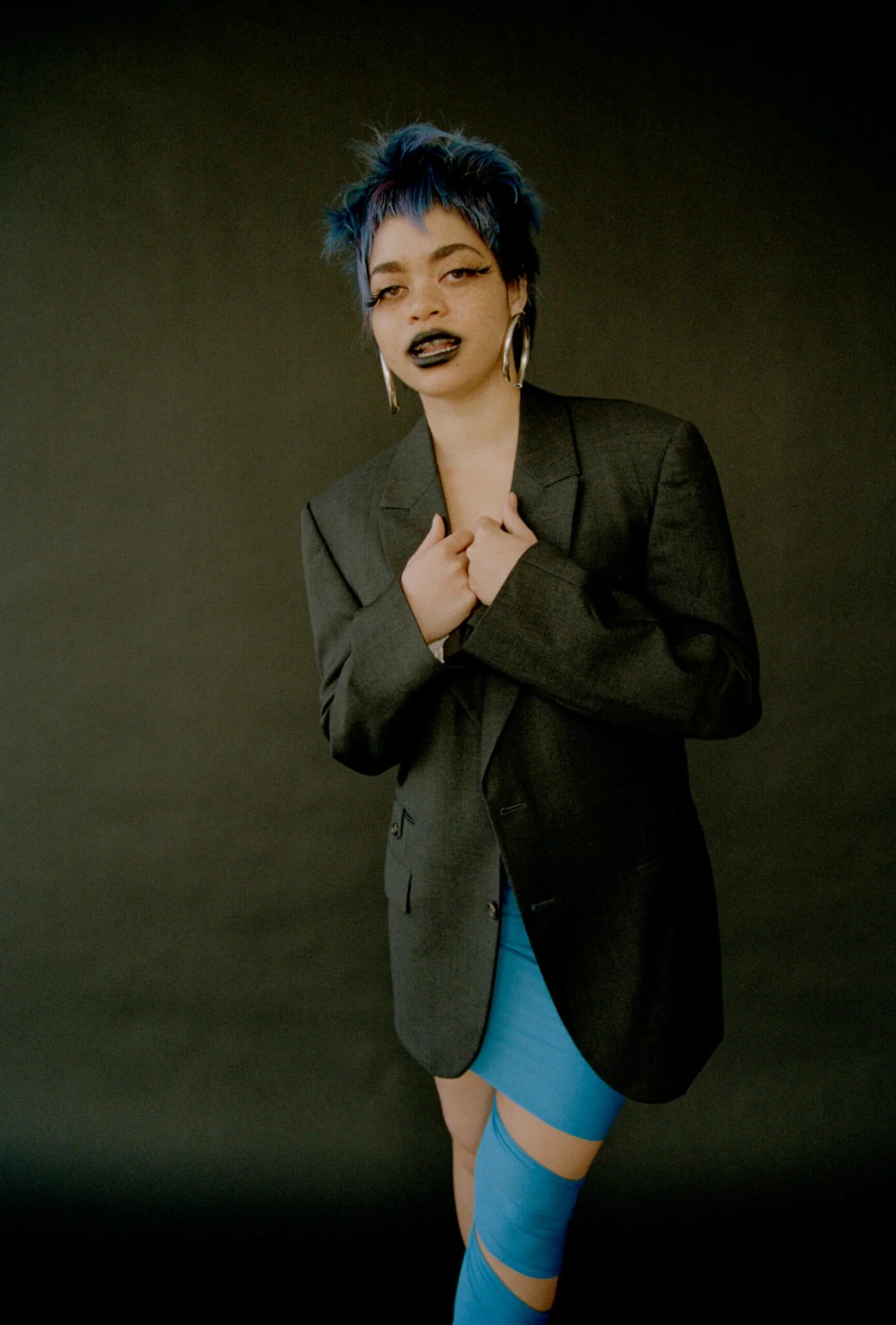 Seashell wears vintage Saint Laurent blazer and vintage earrings
