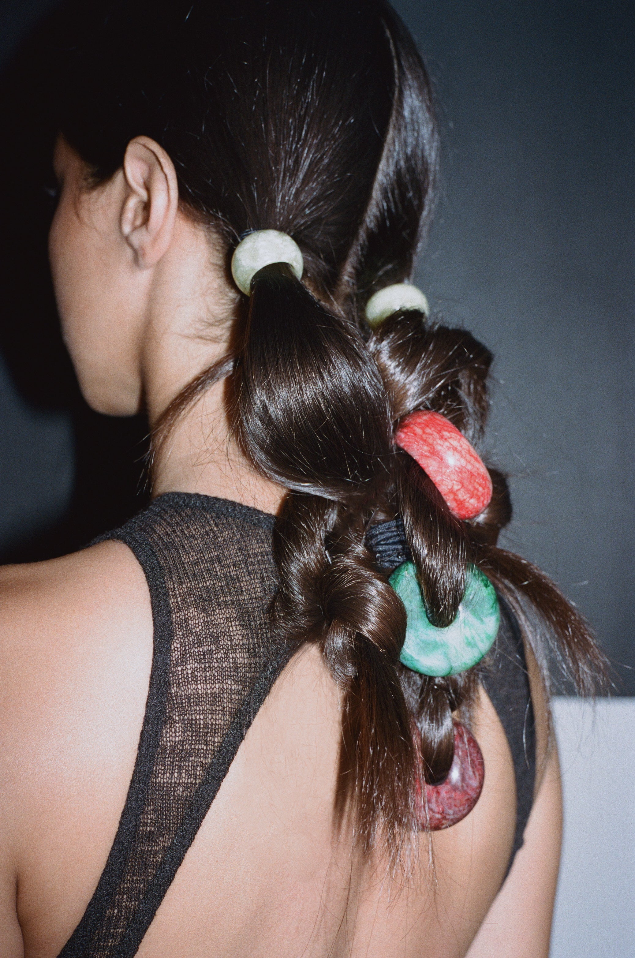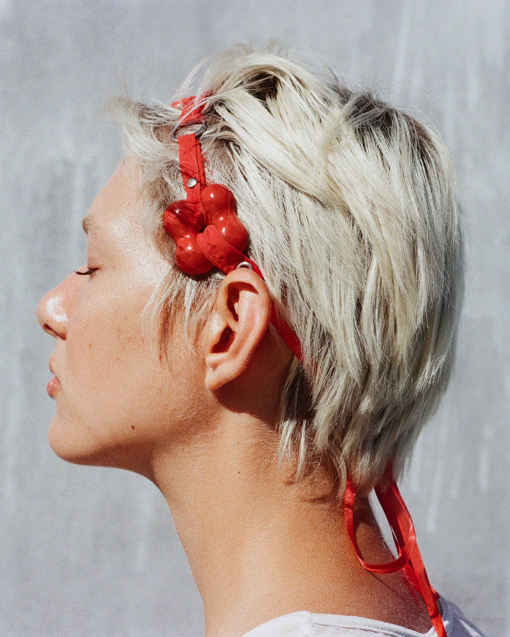 Gem is wearing her own clothes and accesories and a hair piece by Sandy Liang
