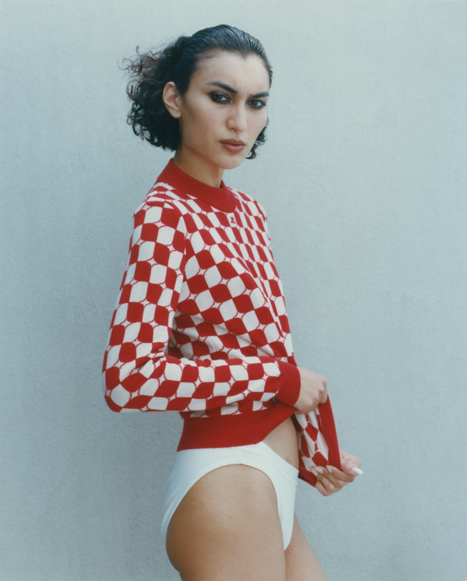 Jules wears a Courrèges sweater from Albright Fashion Library and Hanro underwear from stylist’s archive.