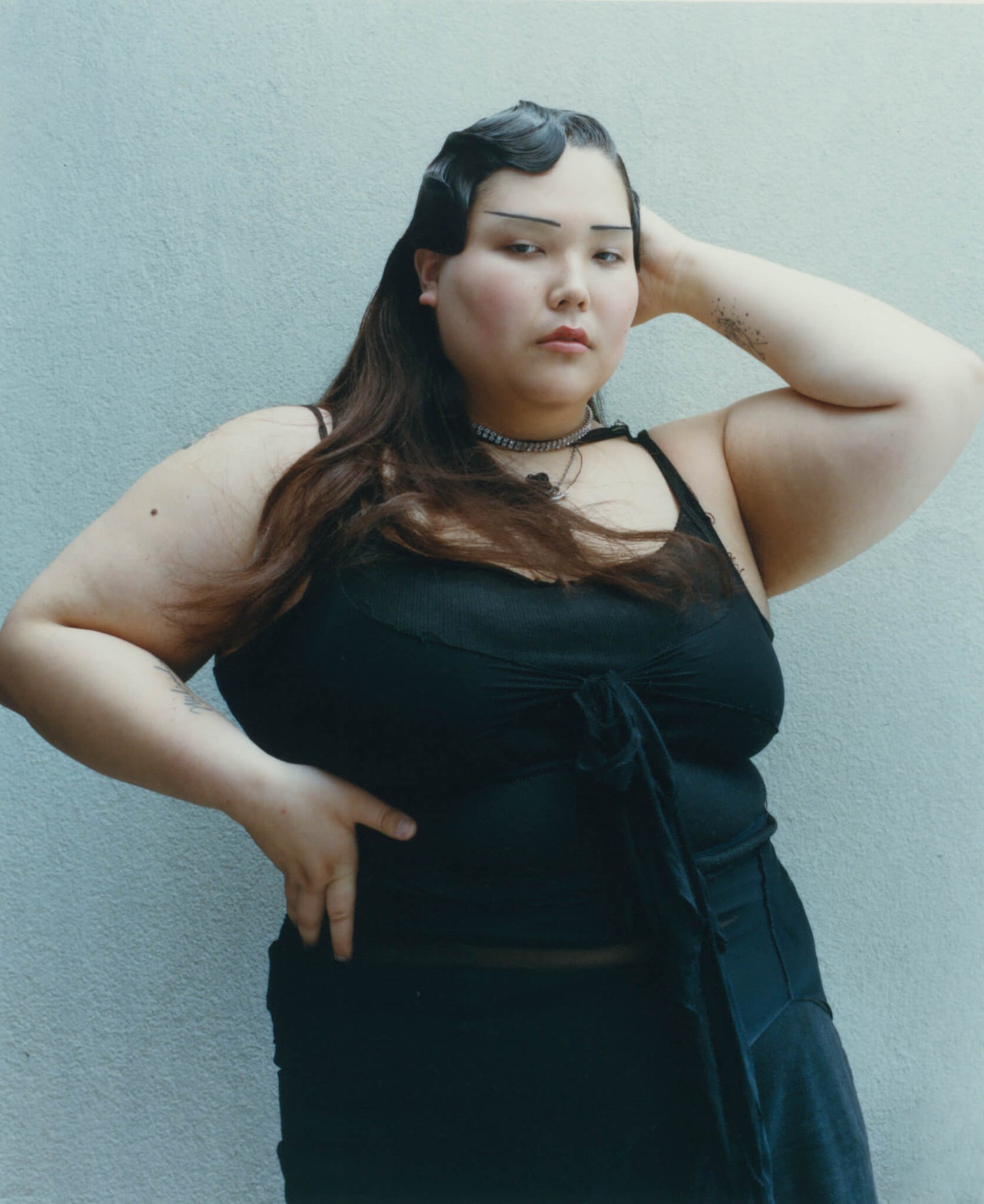 Willa wears an ALIX bodysuit from Albright Fashion Library and Wolford hosiery from stylist’s archive.