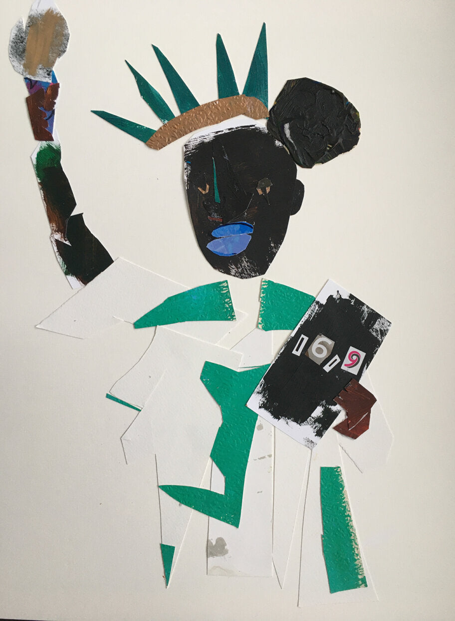 From the artist: To me, Lady Liberty in New York harbor will always be a Black American woman – a descendant of American slavery. Her lips will always be blue, not because she sings like Lady Day, but because she speaks the blues beyond the idiom. She nurtured America, like no other woman or man. Her price for citizenship was paid in blood, and everyone, in America and around the world, has found freedom through the expression that she herself has been denied. She is Liberty’s Blues.