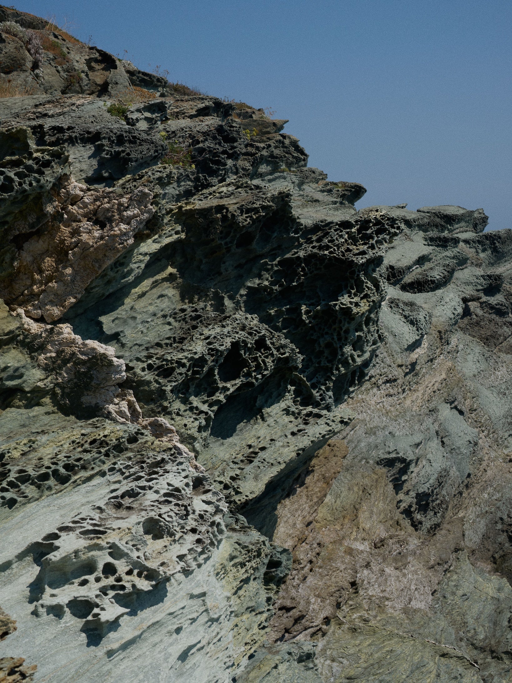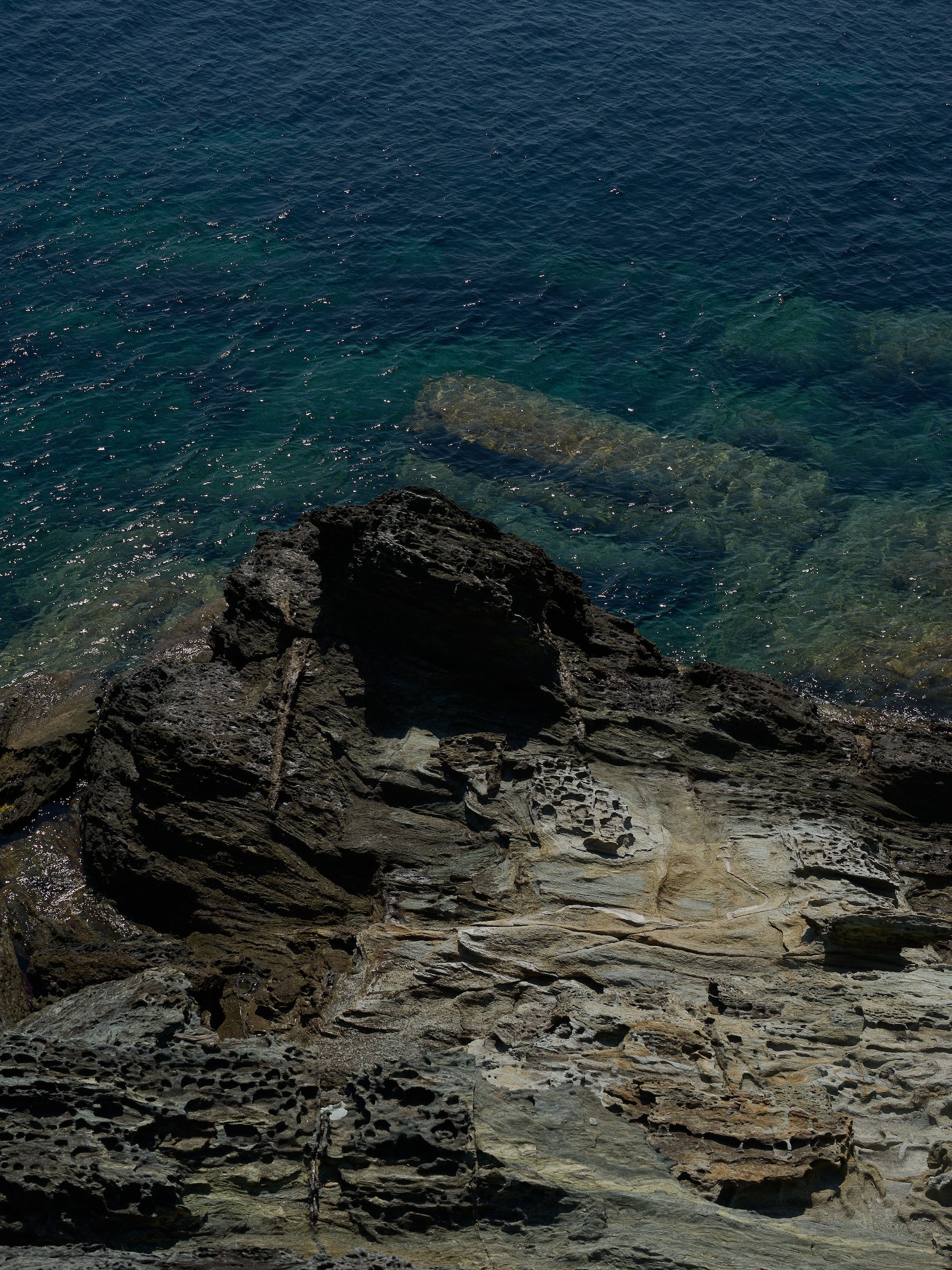 The descent is always steep - nature never makes it easy. You slip through dry brush, crushed rosemary scenting your hands, the sun burning down in a clean, relentless way. At the bottom, the world opens: water clear as glass, rock dark and veined, silence heavy except for the sea. You swim, and it feels like the erasure of noise, of time, of everything that doesn’t belong to the moment.