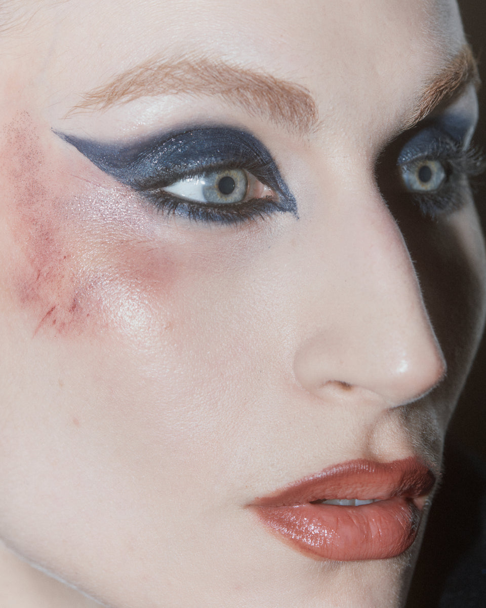 “This collection imagines beauty as a form of activism, with sexy, strong and individualistic beauty looks. The girls are battle vixens and the glam is turned up to full volume but there’s a twist: they are all bruised, battered and scarred. These are fierce warriors who carry themselves strongly, yet there are hints of the constant battle they go through.”