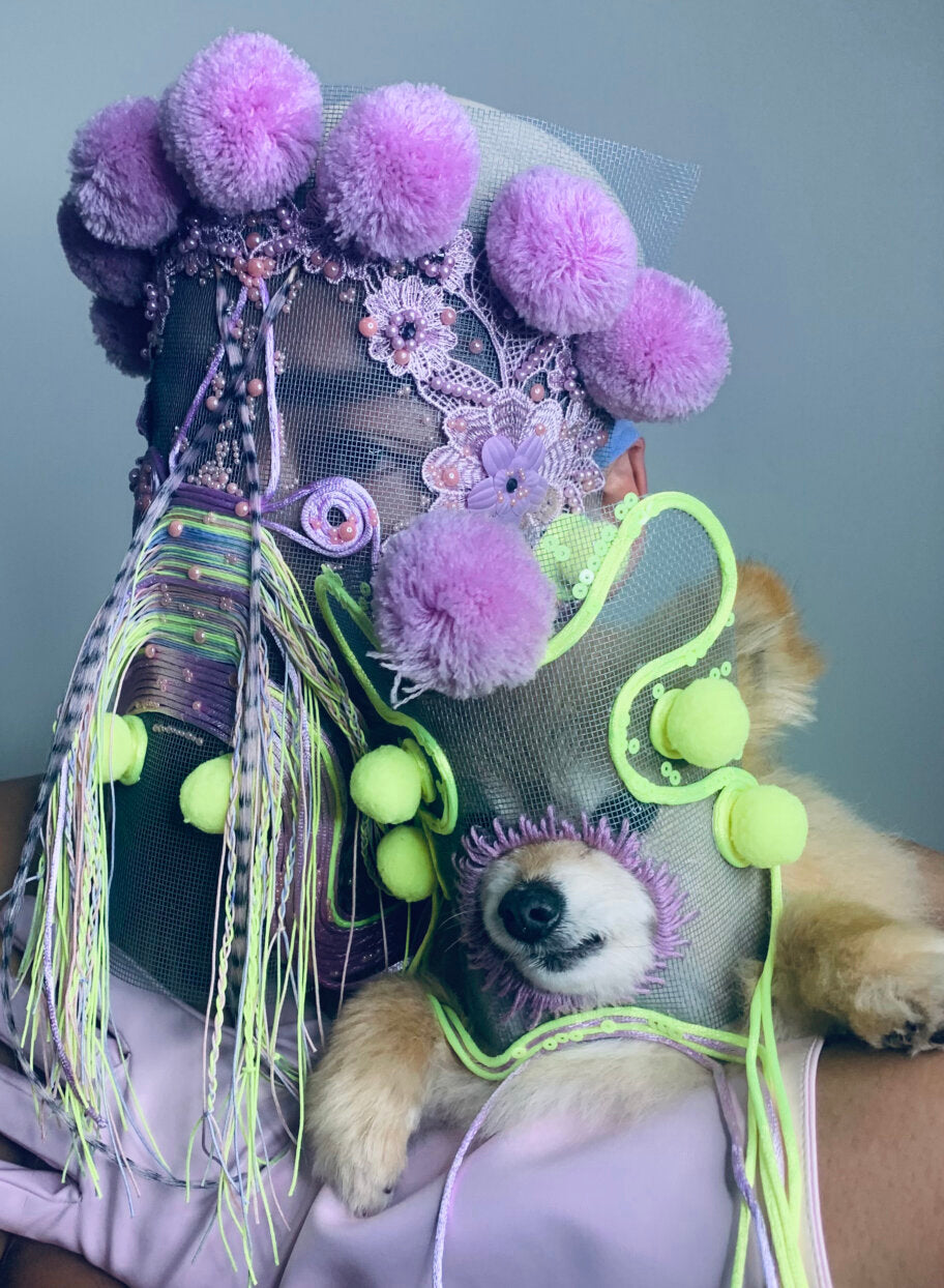 My work before the masks had always stemmed from a raw instinctual part of me whether it was in art direction, painting, photography, sculpture or anything else I put my name to. The need to create was always the driving force behind it all. What the pandemic has proven to me as an artist is that creation doesn’t stop just because the world did. It propelled me in a forceful nature like opposing magnets, to resist reality and delve face first into the universe of my mind. Straddling on the cusp of escapism and fantasy, it was a perfect marriage for the duration of Covid-19. Now that we are let out and our lives are more sociable, my creatures, a term I call my masks, have taken on the next form of having the face less hindered and adorned with more lux embellishments. The evolution with each piece represents the ebbs and flows of my conscious and unconscious psyche.