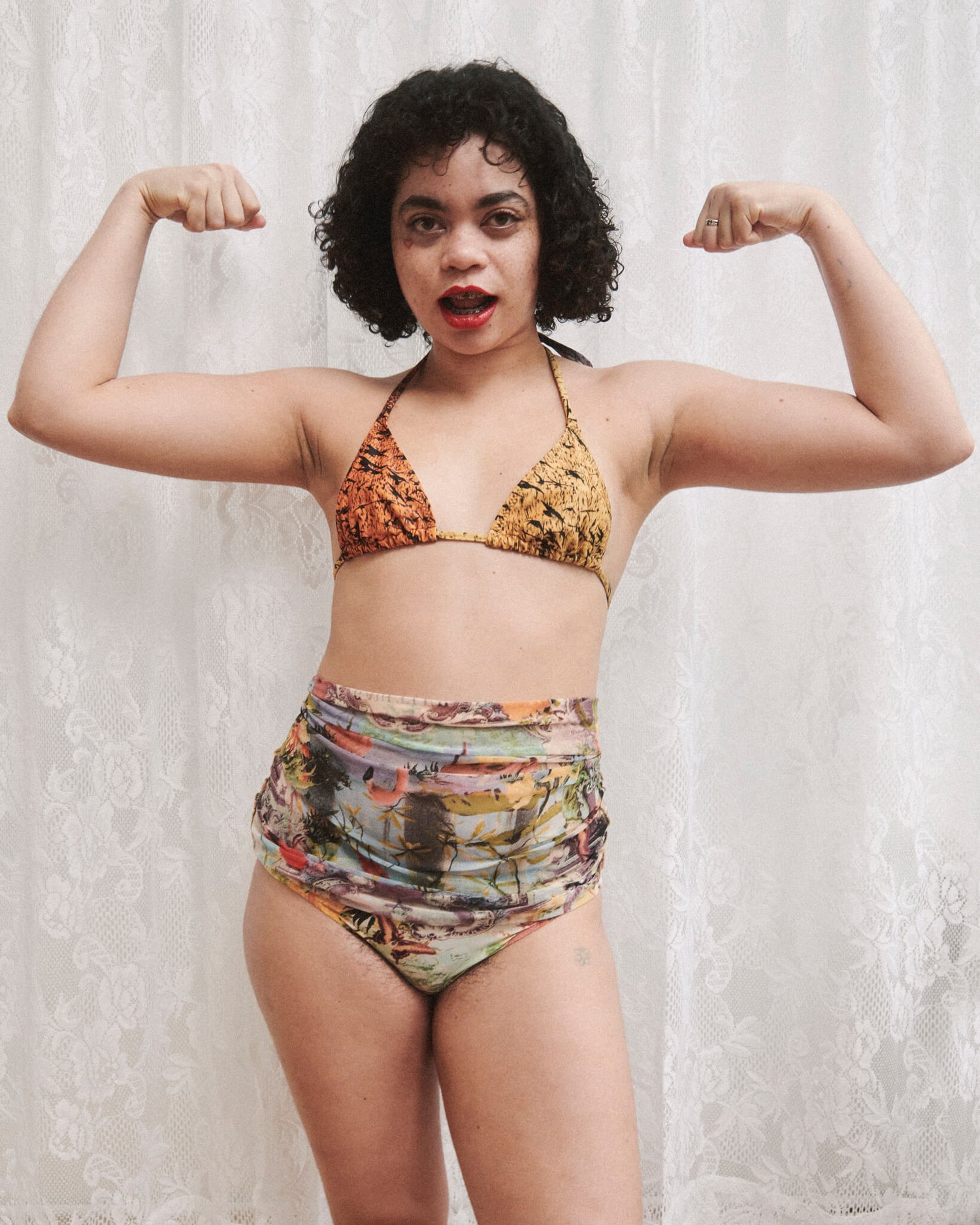 Seashell wears a bikini by Priscavera and bikini bottom by Jean Paul Gaultier, from Artifact NY