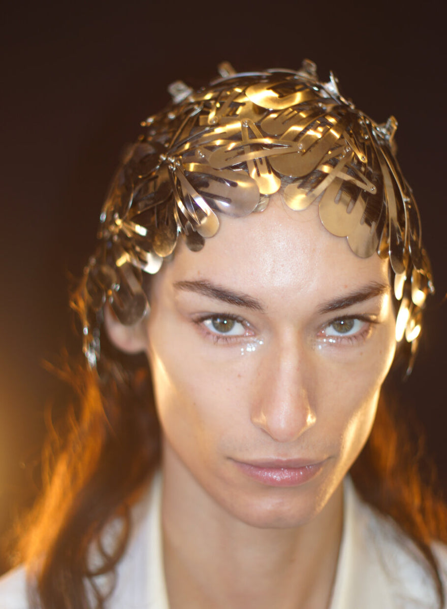 Ask me, “How is it growing?” For FW22, Private Policy peered into the magical world of mushrooms for inspiration, stumbling upon curious new ways to interpret the space that exists between the natural and technological space. Below, join Submission Beauty as we add a touch of glitter and explore the fungi universe.
