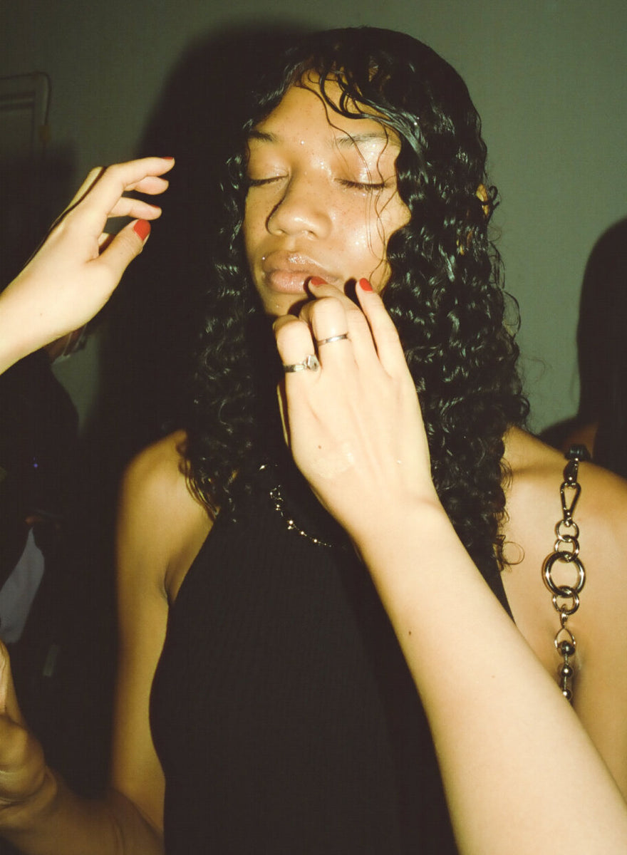 The colors worked seamlessly with the palette of Submission Beauty Glitters, which key makeup artist Zenia Jaeger mixed in an exclusive array of combinations to suit each model’s skin tone and glow.