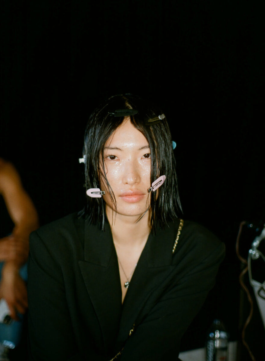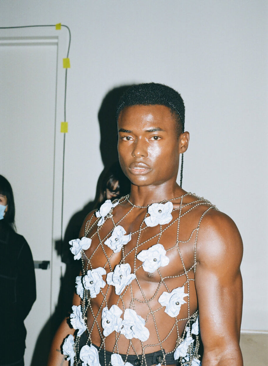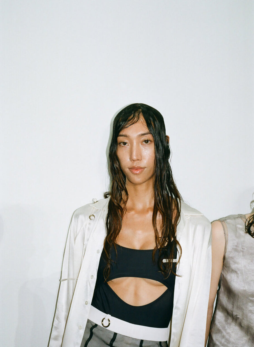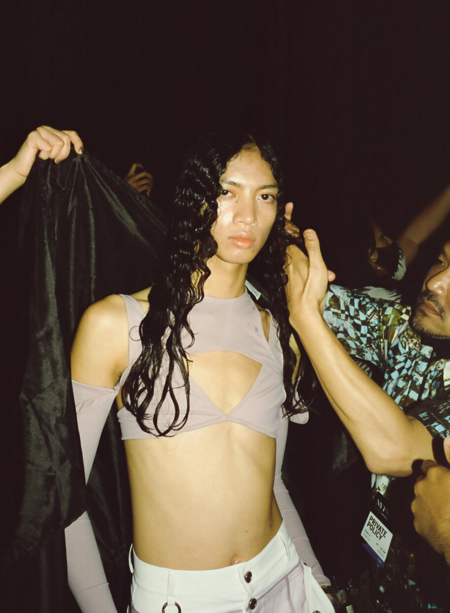 In an emotional return to the runway, Chinese-American Private Policy showed their SS 2022 collection in downtown Manhattan Friday morning. Siying Qu and Haoran Li presented a show that proved to be an excellent combination of what happens when you imagine club-kid inspired streetwear through the lens of the botanical world. In what turned out to be a beautiful meeting of minds, Submission Beauty was invited to participate and bring our interpretation of the theme, adding a flick of natural shine to their quietly powerful statement.