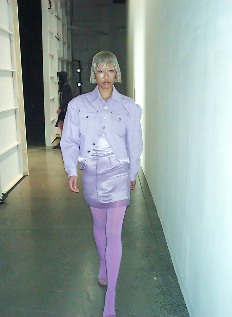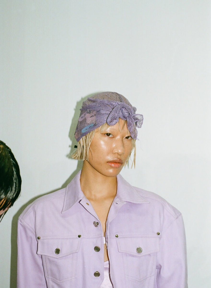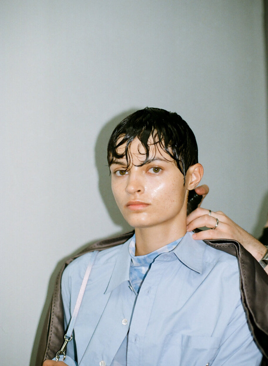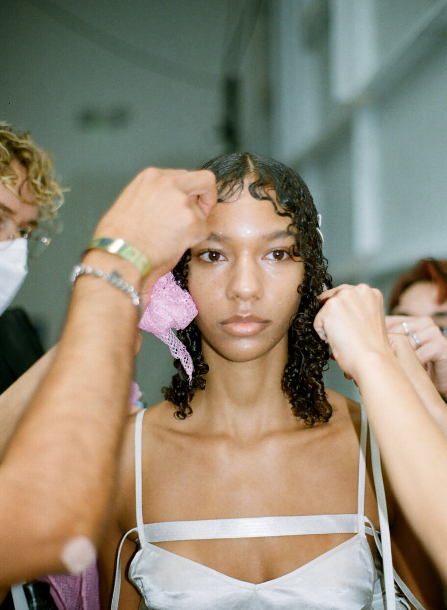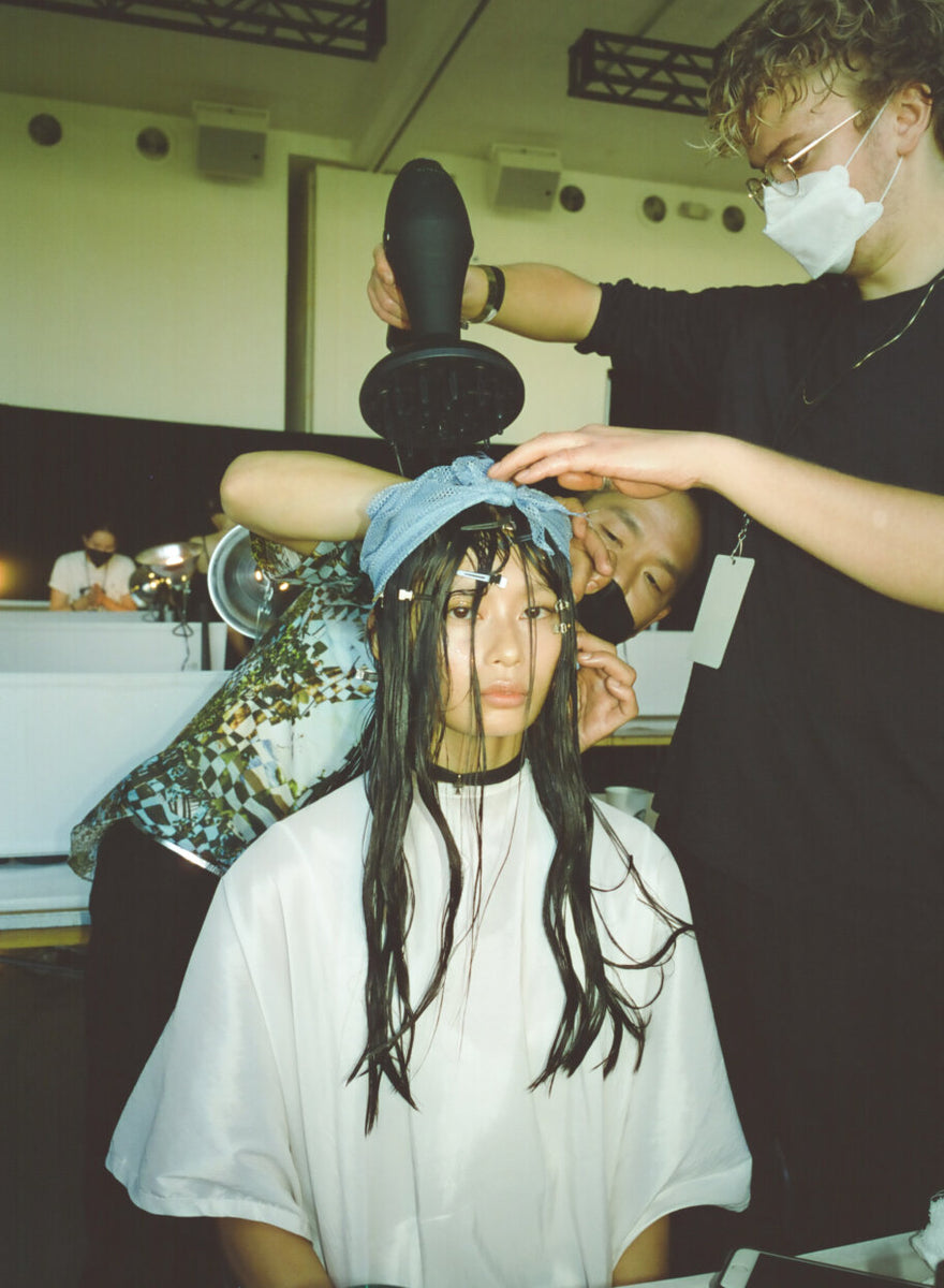 In an emotional return to the runway, Chinese-American Private Policy showed their SS 2022 collection in downtown Manhattan Friday morning. Siying Qu and Haoran Li presented a show that proved to be an excellent combination of what happens when you imagine club-kid inspired streetwear through the lens of the botanical world. In what turned out to be a beautiful meeting of minds, Submission Beauty was invited to participate and bring our interpretation of the theme, adding a flick of natural shine to their quietly powerful statement.