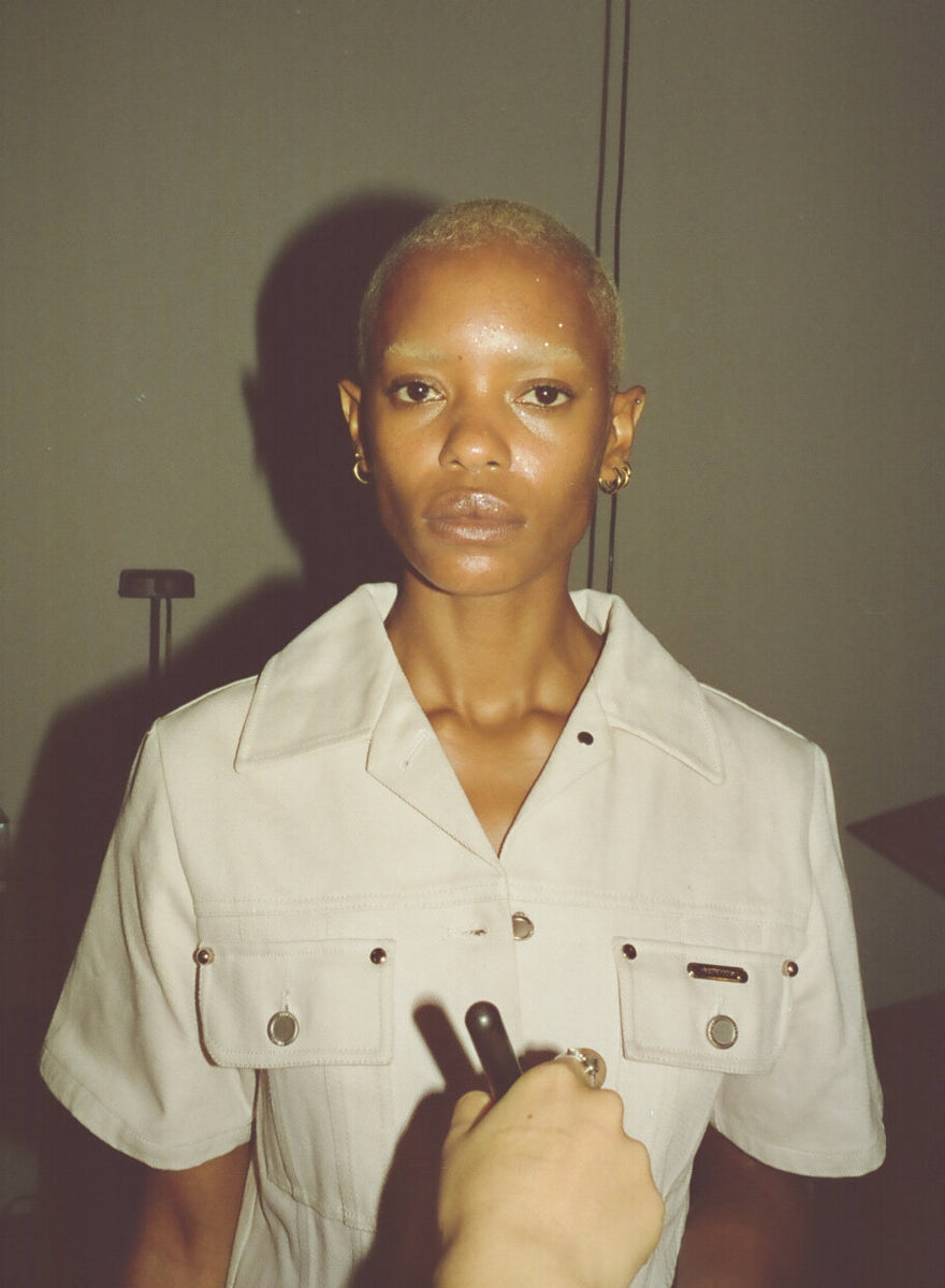 In a first for us at submission, I made custom blends of all of our shades, experimenting with color combinations that would make each individual sparkle to their full potential. After adding lots of shine and glow to their skin, we dusted each model with a unique glitter combination, bringing forth a luster that looked incredibly fresh to me.