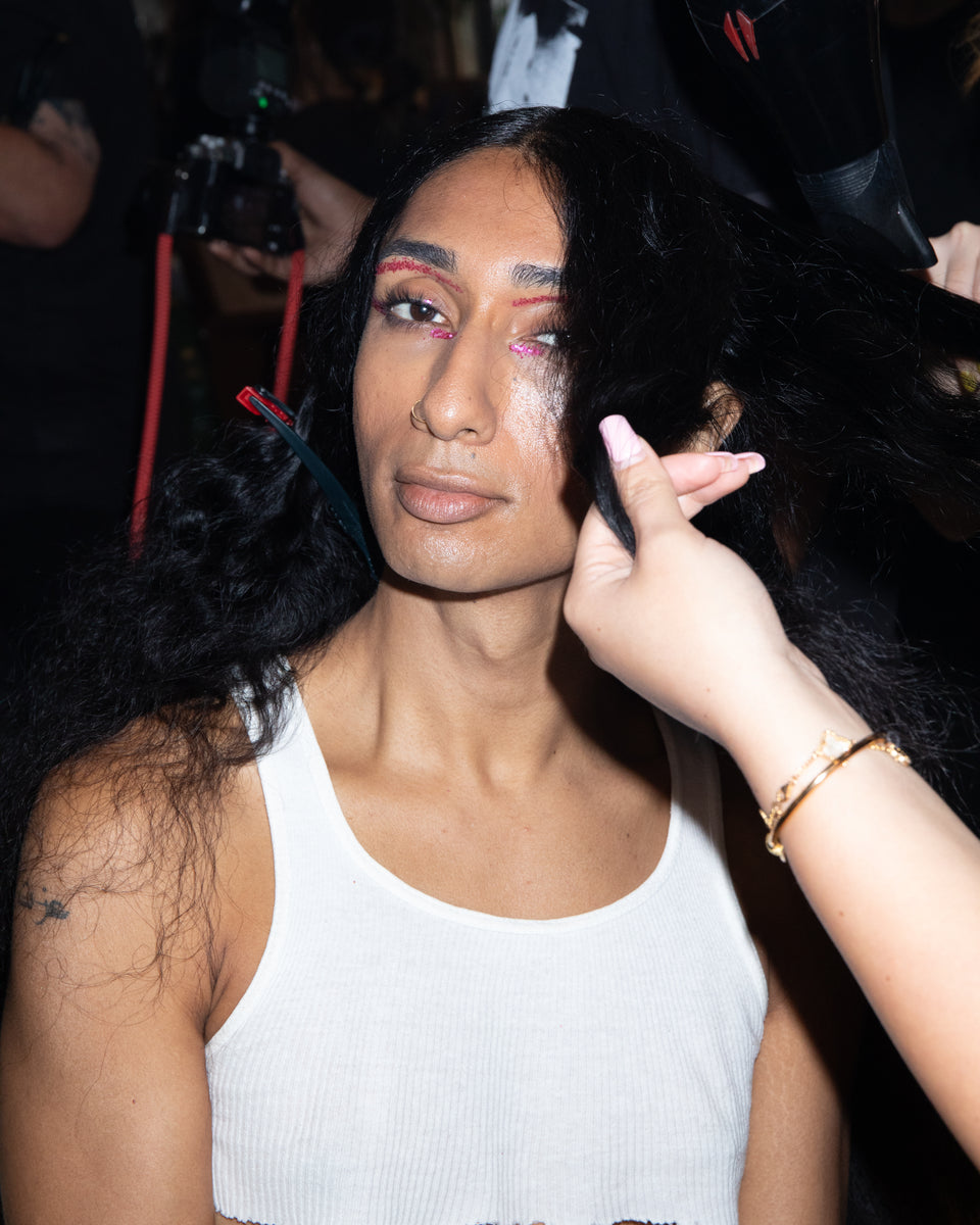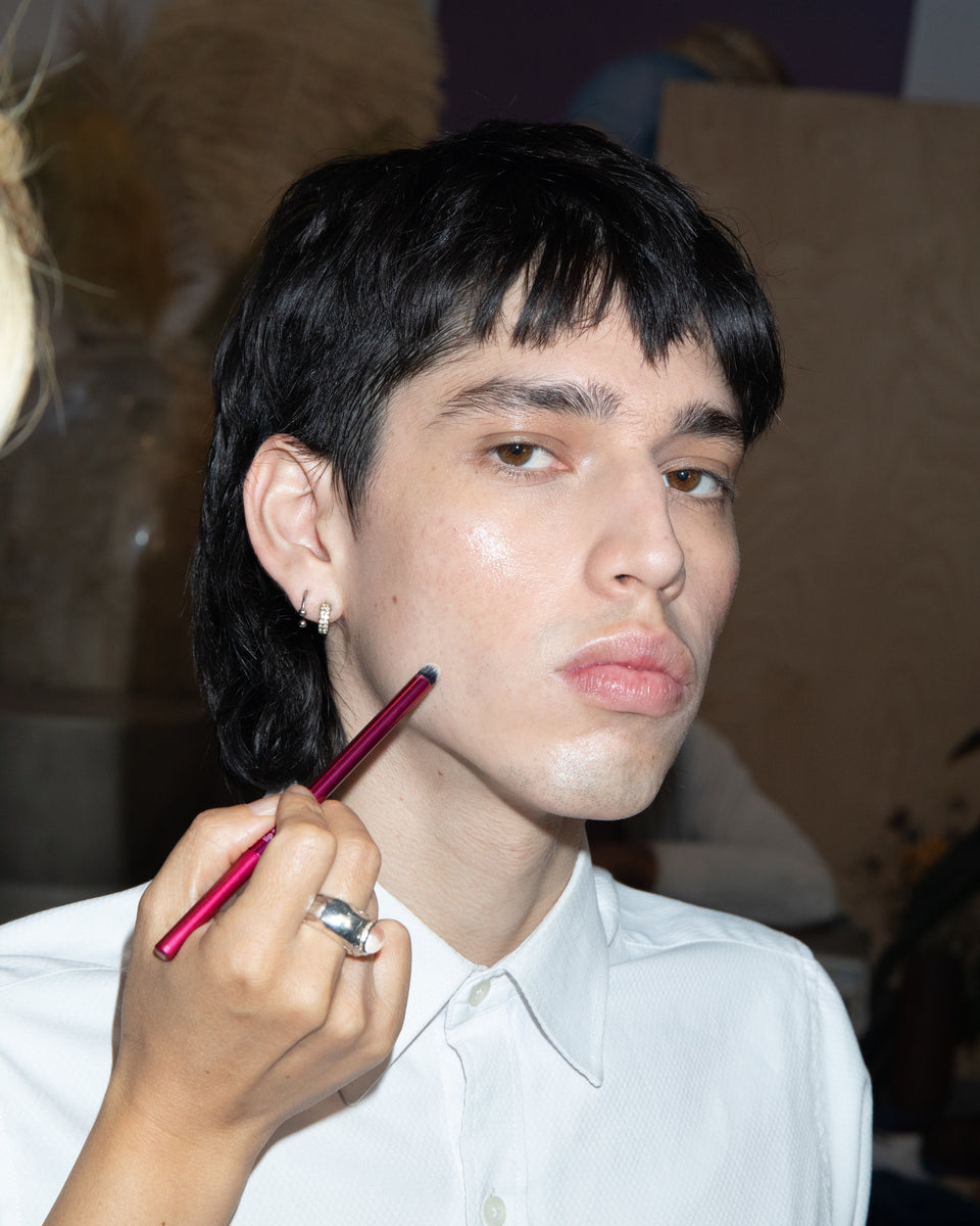 “For the SS25 Rio show, we worked with the full Submission Beauty collection of products. We love the diverse and inclusive casting and chose to have some models walking nearly barefaced. They’re wearing Balm Shiny to add a gloss to eyelids and lips and our Highlighter Lucid to illuminate cheekbones. I also used Highlighter Deep to add a bit of bronze to their cheeks and eyelids.